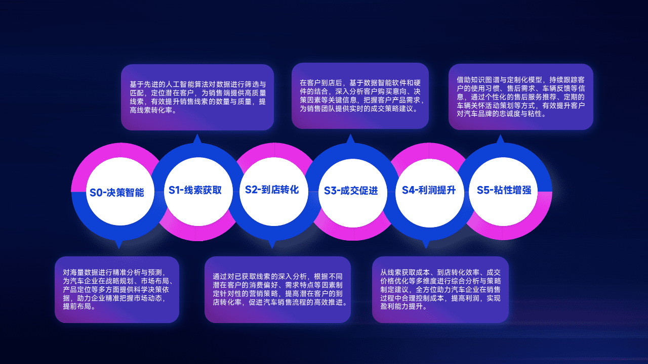 通过拓宽潜在客户来源、、、优化线索分配并提高到店转化率,,,,以增强销售效率。。。同时,,,,利用线索数据不断优化分析模型,,,有效提升转化率,,,扩大营销影响力。。。